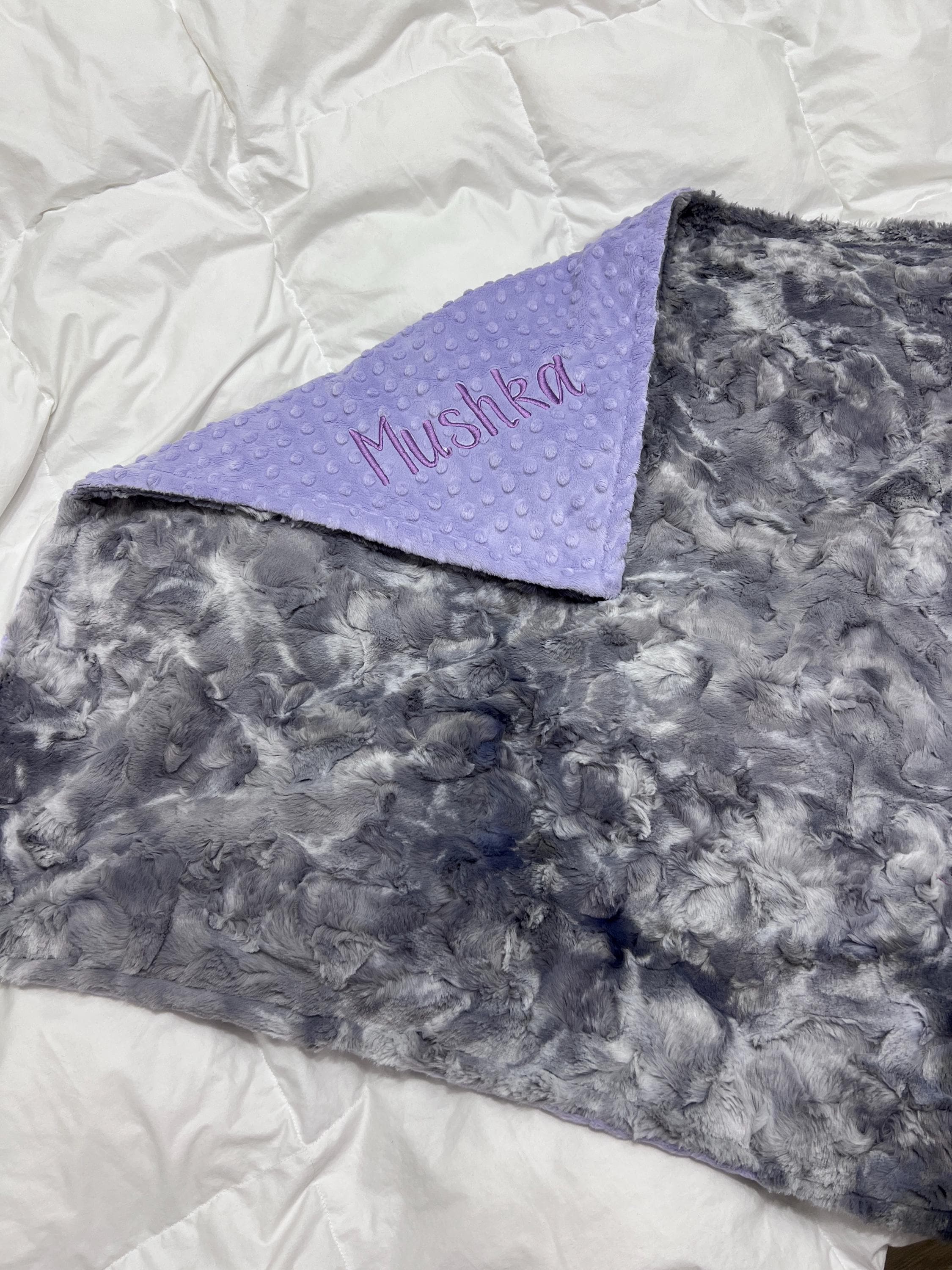 📏 Sizing: Each blanket is handmade, so sizes may vary slightly. Embroidery size depends on name length, font, and setting – more characters will result in smaller text. If you do not select a font or thread color, we will produce it as pictured.